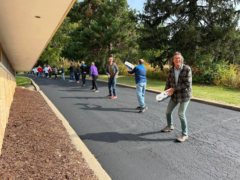 This is the toilet paper pass we traditionally do on Rally Sunday. The TP is for the Lakeview Food Pantry.
